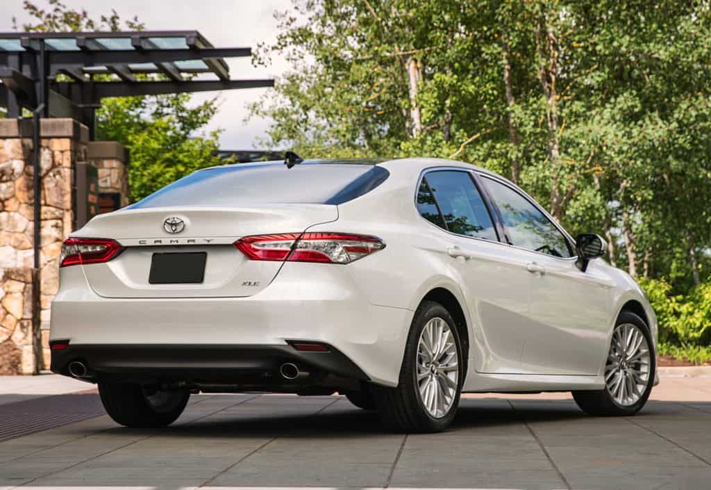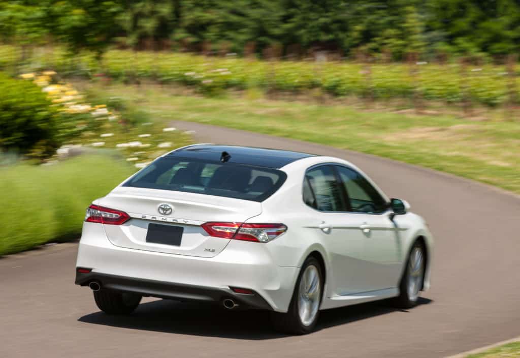 The new Camry comes in five trim levels. The base is the L model and it has a starting price of just $23,495. From there you go up to the LE, the SE, the super-sporty XSE, and the top-of-the-line XLE, which is what I am reviewing in a new color called Wind Chill Pearl.