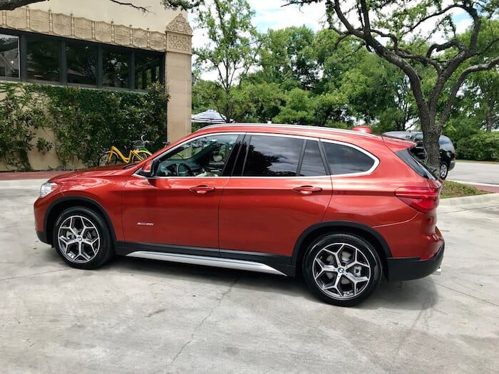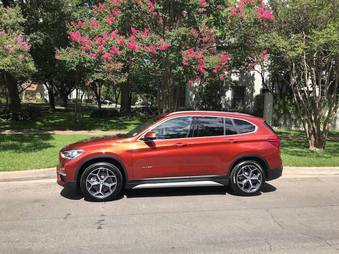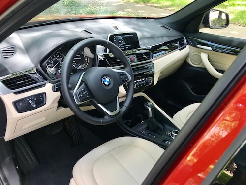 Redesigned in 2016, the 2018 model doesn’t come with a host of changes. But thank you BMW for making a rear backup camera now standard. My 2018 BMW X1 xDrive28i AWD model stood out in Orange Sunset Metallic ($550) with 18-inch alloy wheels, satin aluminum roof rails, and matte chrome trim. LED cornering headlights are a standalone $950 option. The cabin is upscale with quality materials. My test vehicle sported the Canberra Beige Dakota Leather interior ($1,450) with its high gloss black trim with Pearl Gloss Chrome highlights. For being the smallest SUV in BMW’s lineup, the X1 is very roomy inside with generous headroom and legroom. Still, while the X1 is classified as a 5-passenger SUV, I’d caution it fits 4 adults comfortably. There’s a middle space for a third person in the 2nd-row, but I’d say it’s more for kids. To comfortably fit three full-size adults, I’d go for something bigger. The X1 comes with 40/20/40-split rear seats. For $300 you can add sliding and reclining rear seats. Cargo space is great and there’s a standard power tailgate. Designers executed the cabin well and the center stack jets out making it easy to reach. What did surprise me was the relatively small digital driver info display beneath the large old school tachometer area. BMW makes a great gear shifter and the electric parking brake is within easy reach on the center console. When it comes to comfort, that’s a tough one for me. Unfortunately, I can’t give the rather flat leather front seats my thumbs up. They weren’t extremely supportive and my back never found its sweet spot even with the lumbar support. Of course, seat comfort is a very individual thing for every driver. Standard cabin features on my test vehicle include a leather-wrapped sport steering wheel, rear-view camera, dynamic cruise control, dual-zone climate, rain-sensing wipers and a power tailgate. My tester’s $2,500 Convenience Package adds a panoramic sunroof, power-folding mirrors, comfort access keyless entry, lumbar support, ambient lighting and SiriusXM. Its heated front seats and steering wheel are a standalone $550 option. The X1 comes with a standard 7-speaker audio system. A Harman Kardon surround sound system upgrade is $875.